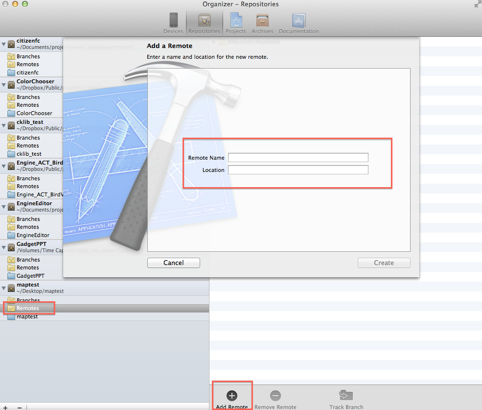 1. Add the Remote Git in Organizer Remote. (diagram attached)