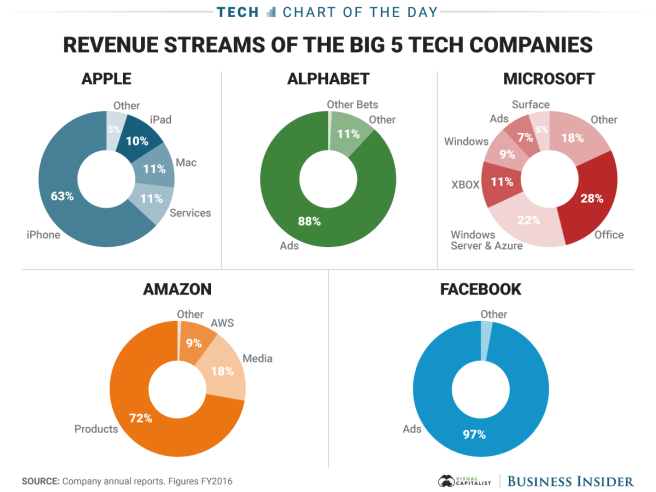 - Facebook 有明確的獨立裝置計劃。而且發佈了幾個 VR 產品:Facebook space、360 相片/影片、360 攝影硬件、AR studio。