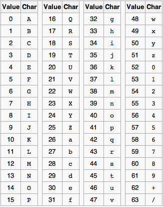 即是,任何Bit stream都可以以這64個字編碼後當printable的字來傳送。